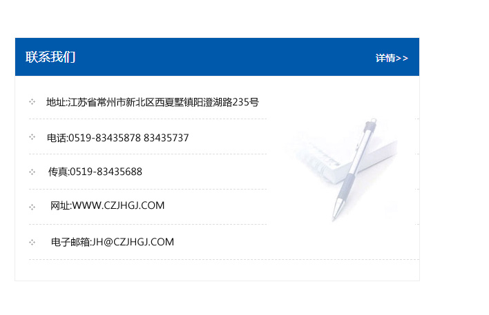 傳真:0519-83435688    郵編:213135    網址:WWW.czjhgj_com.cnkwty.com    電子郵箱:JH@czjhgj_com.cnkwty.com